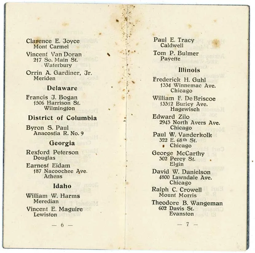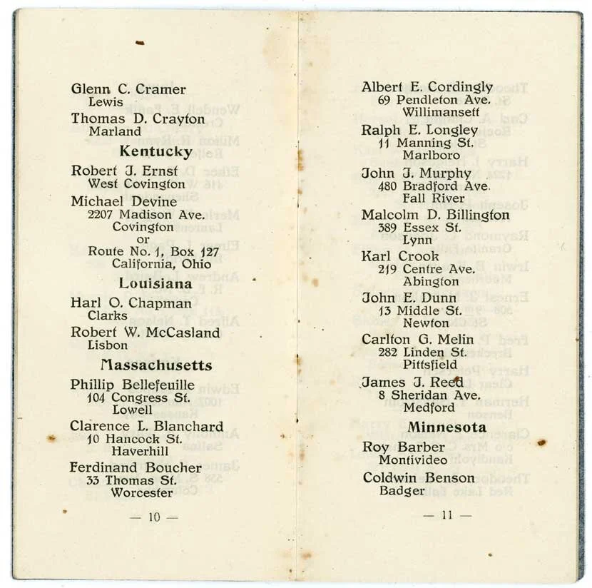 A list of men serving in the Fourth Air Park Air Service of the American Expeditionary Forces, stationed in France. Paul Lockwood is listed on page three (click to enlarge).